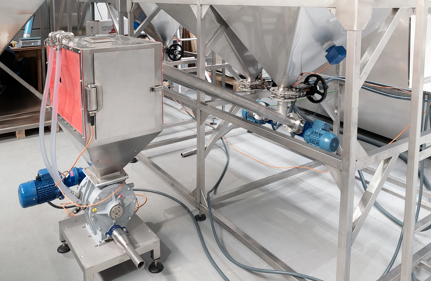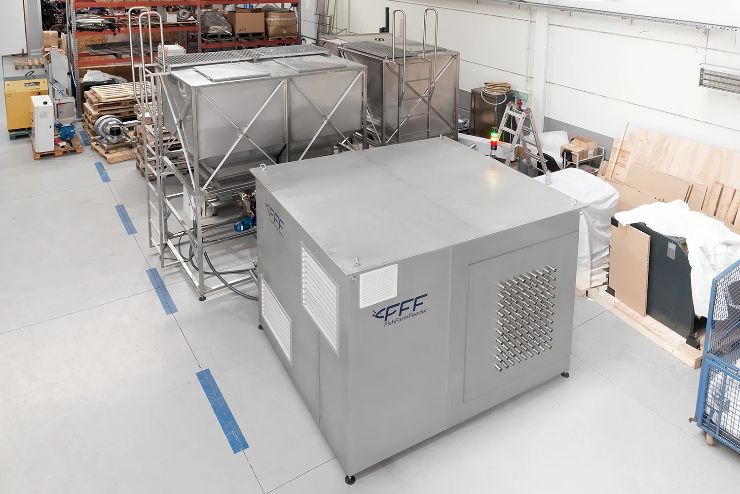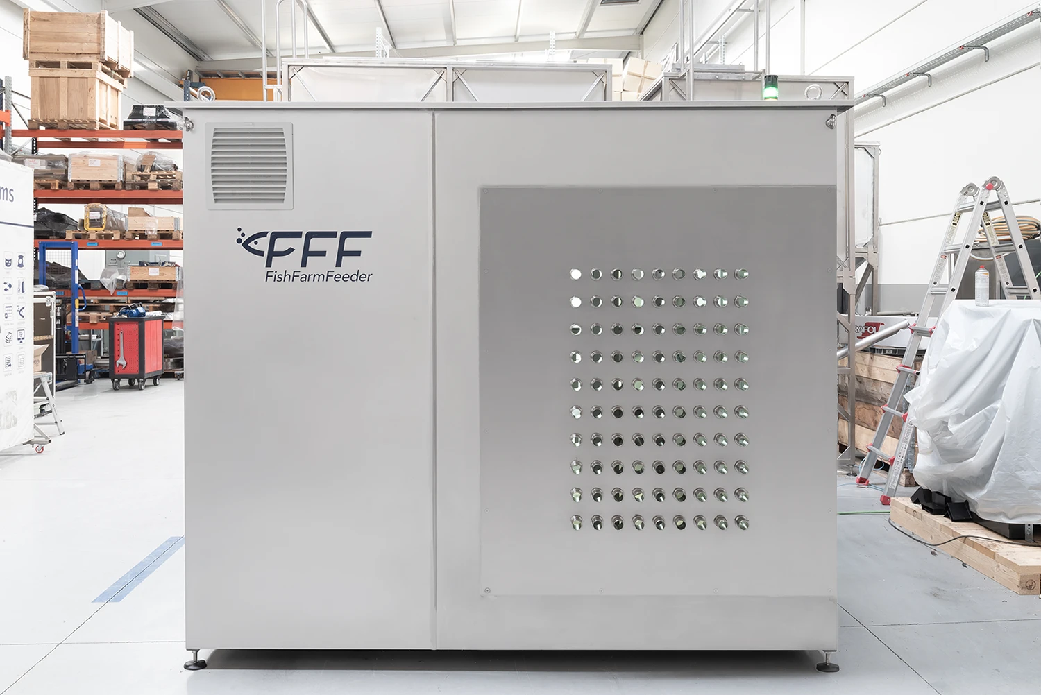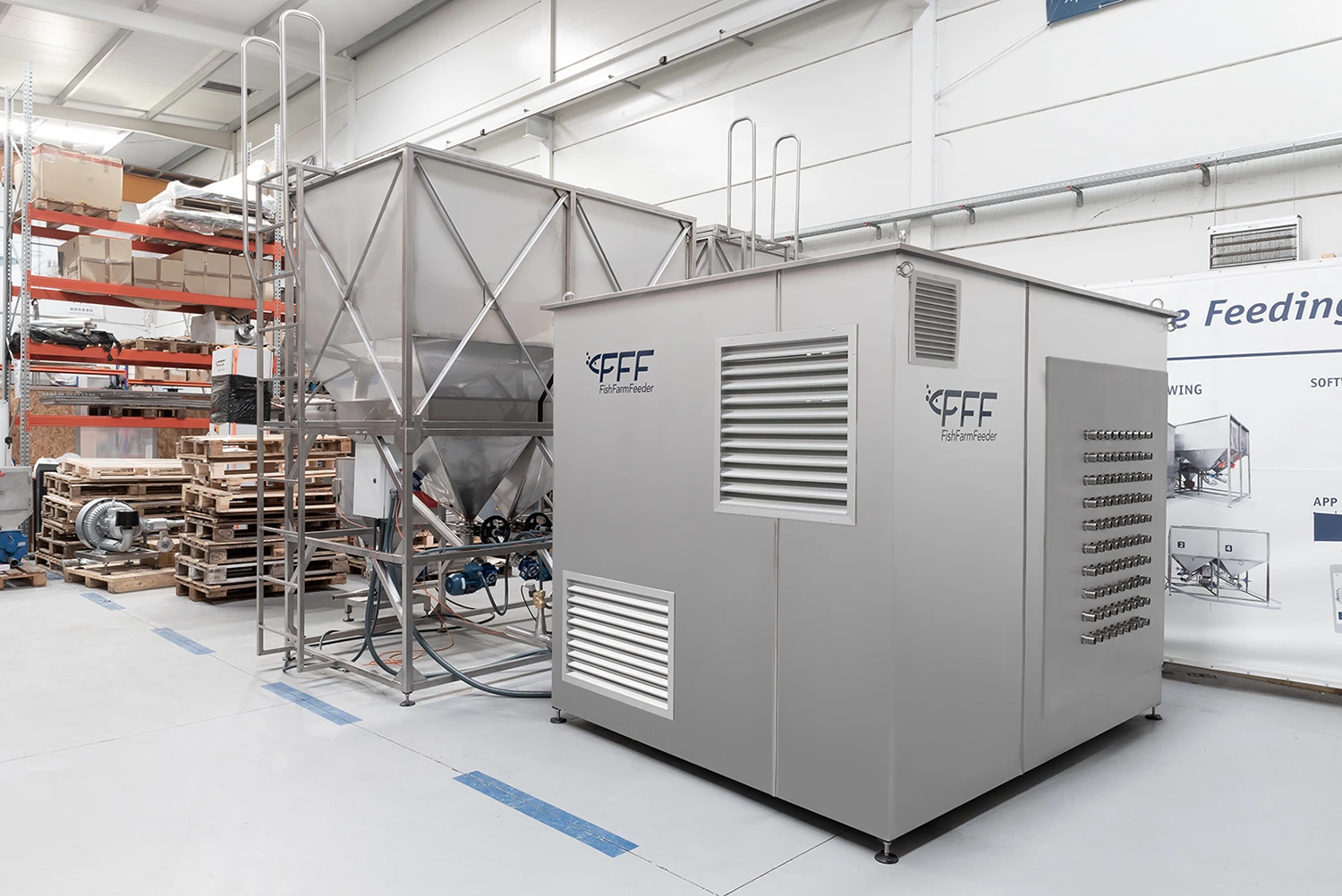 Feeding with extruded, pelletized, or spherized pellets. Custom-built in stainless steel with 4 silos offering a total capacity of 2 m³. High-precision dosing using screw feeders sized according to the required feed volumes. Diluted-phase feeding using a rotary lobe blower. Aqua3F software provides complete management of dosing, species and feed traceability, and feeding history.