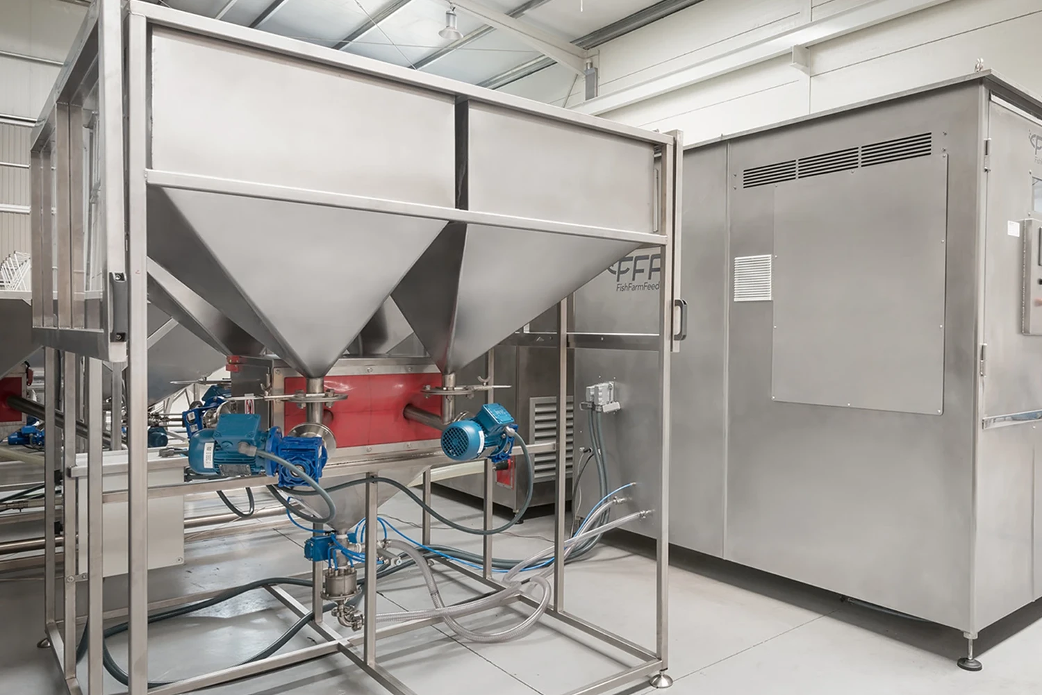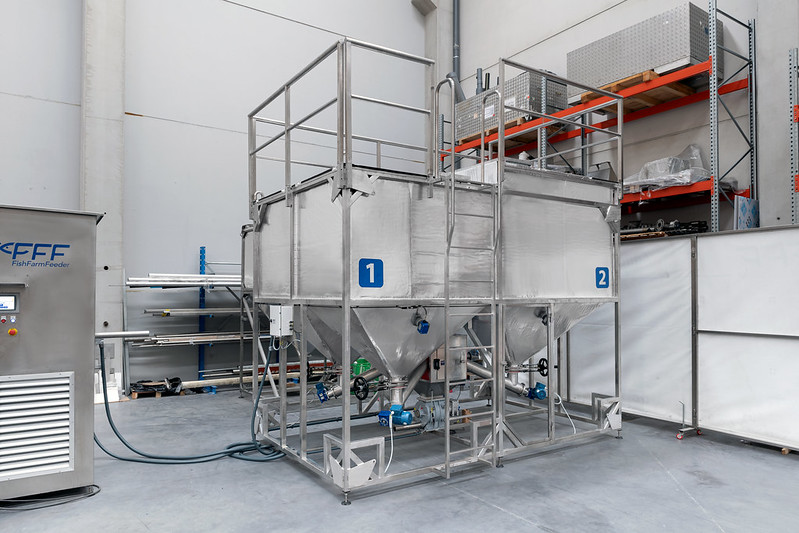 En contrario a otros elementos de un alimentador fabricado por FFF existe la posibilidad de que los silos se suministren o personalicen en el lugar de instalación del sistema de alimentación acuícola.