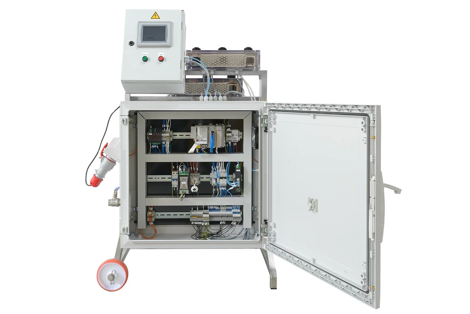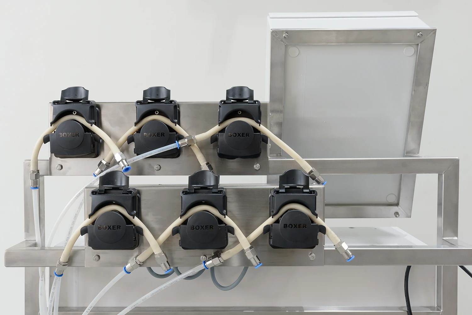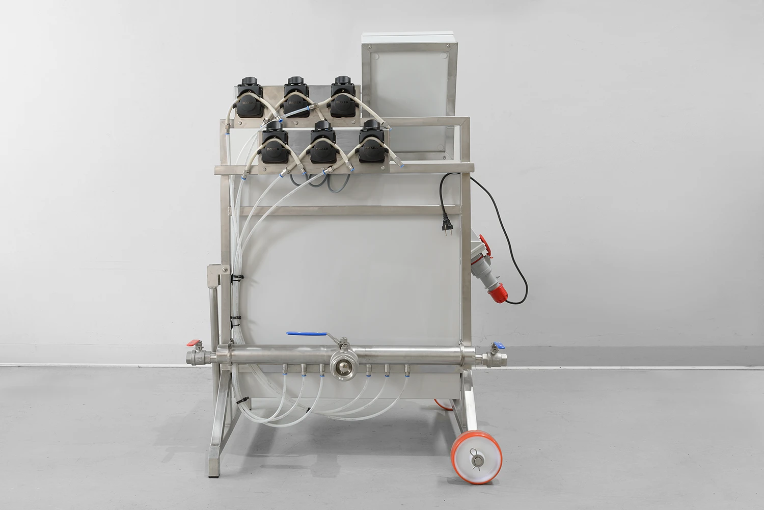 Alimentación con Artemia, Rotíferos, Microalgas, Copépodos, etc. Fabricación en acero inoxidable. Conexión a tanque de cliente con alimento vivo ya preparado. Dosificación utilizando bombas peristálticas con caudal dimensionao acorde a la dosificación. Diseñado para llevar a cabo una limpieza diaria de todo el alimentador y tuberías. Software con programación para la dosificación incluido.