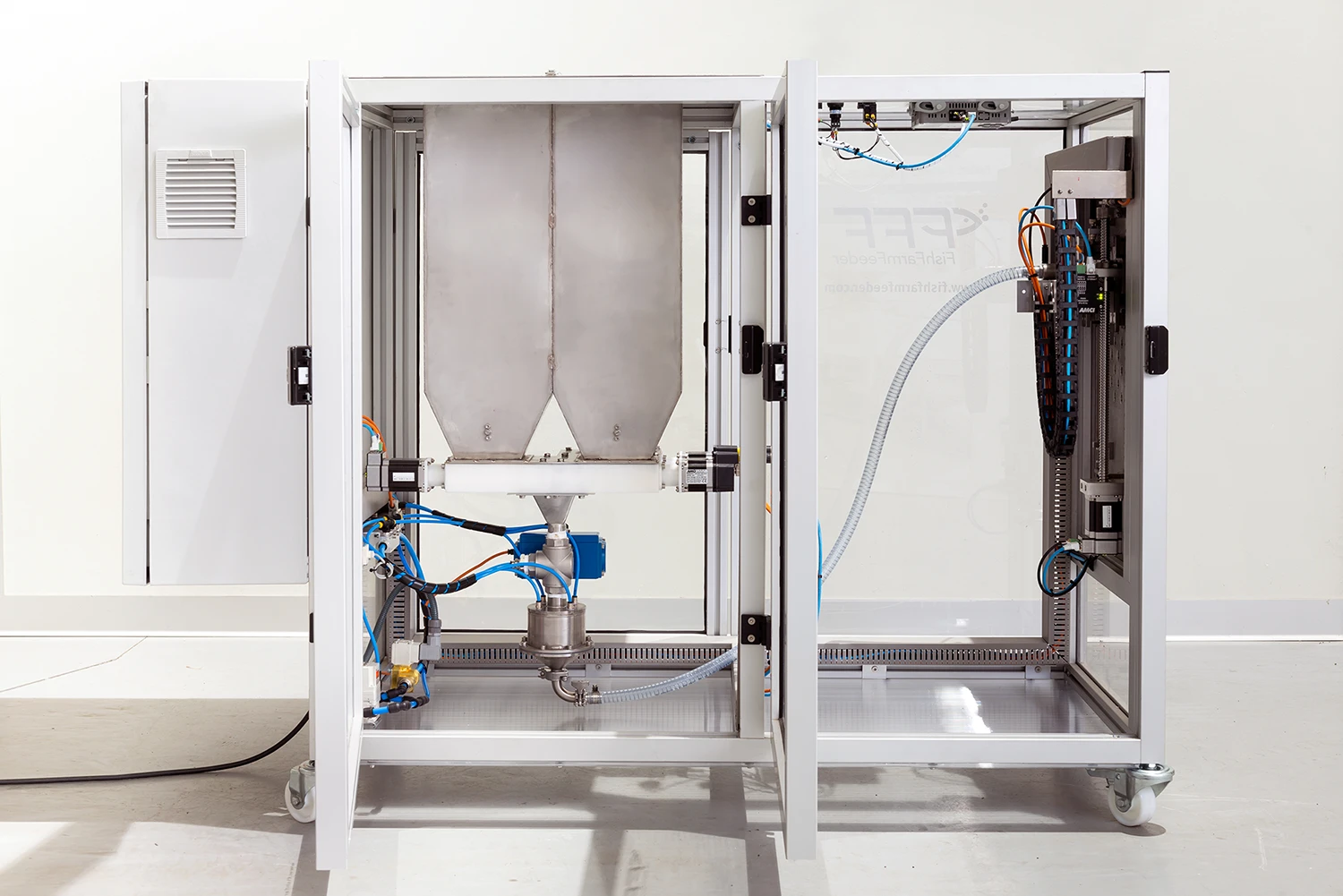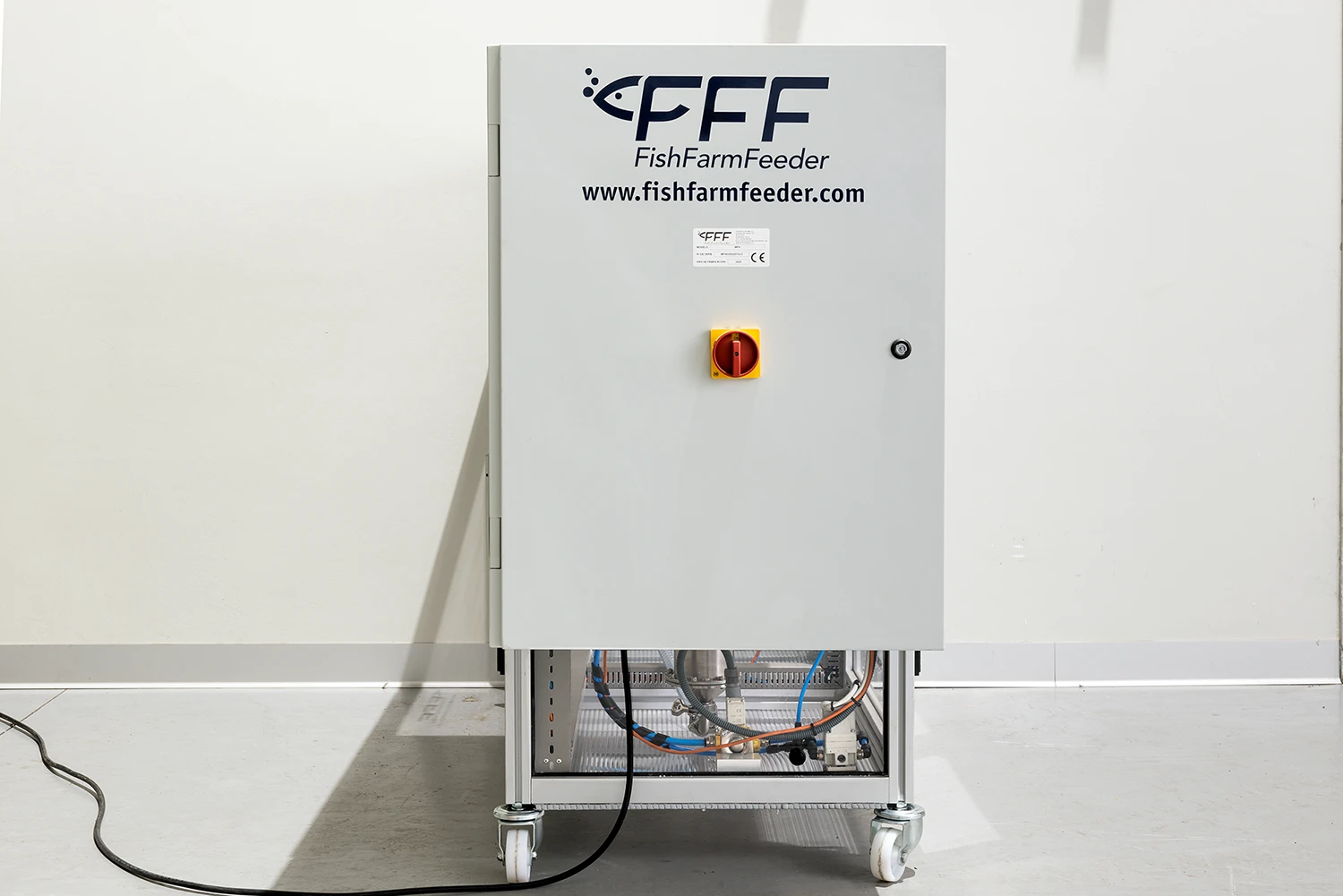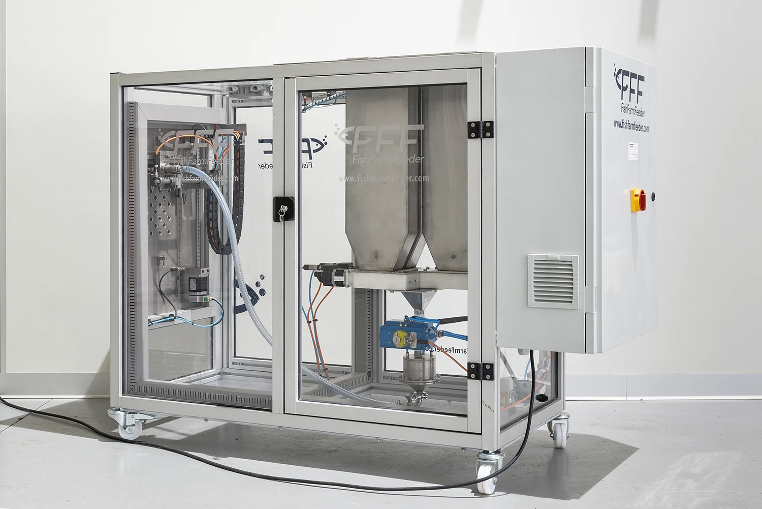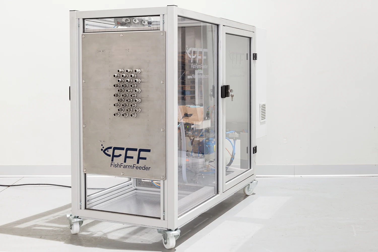 Alimentación con microdietas de pienso seco extrusionadas, peletizadas o esferizadas. Fabricación a medida en acero inoxidable y aluminio con 3 silos con capacidad para un total de 30Kg. Dosificación de alta precisión utilizando tornillo sinfín dimensionado acorde al tamaño de la dosificación. Alimentación en fase densa con dosis máximas individuales de 100 gramos utilizando compresor de aire. Software Aqua3F para una completa gestión de la dosificación, trazabilidad de la especie y el alimento e históricos de alimentación.