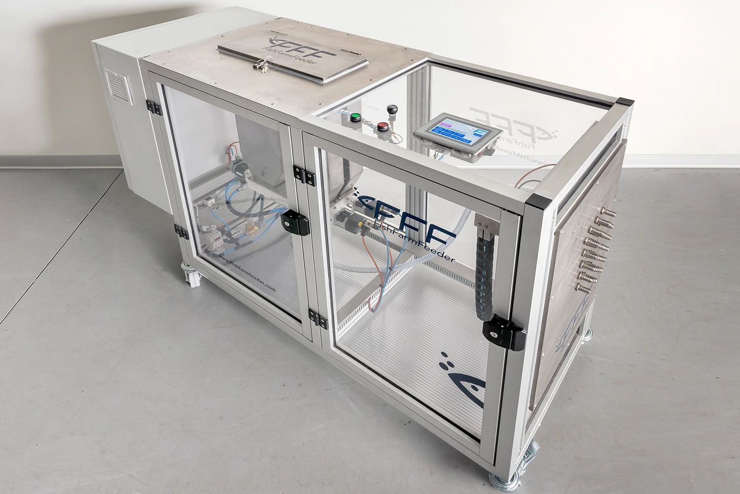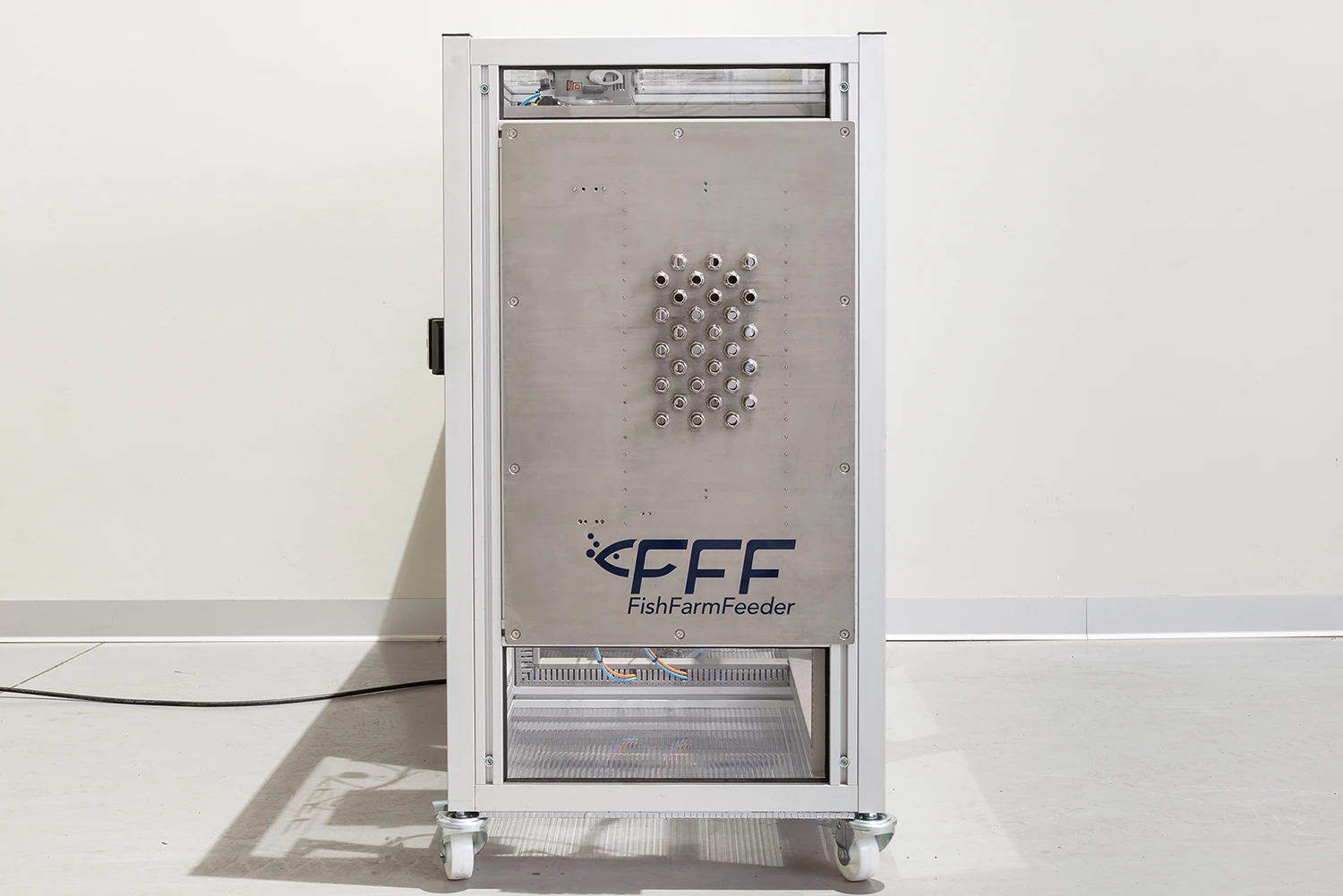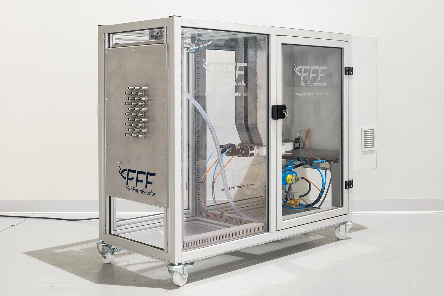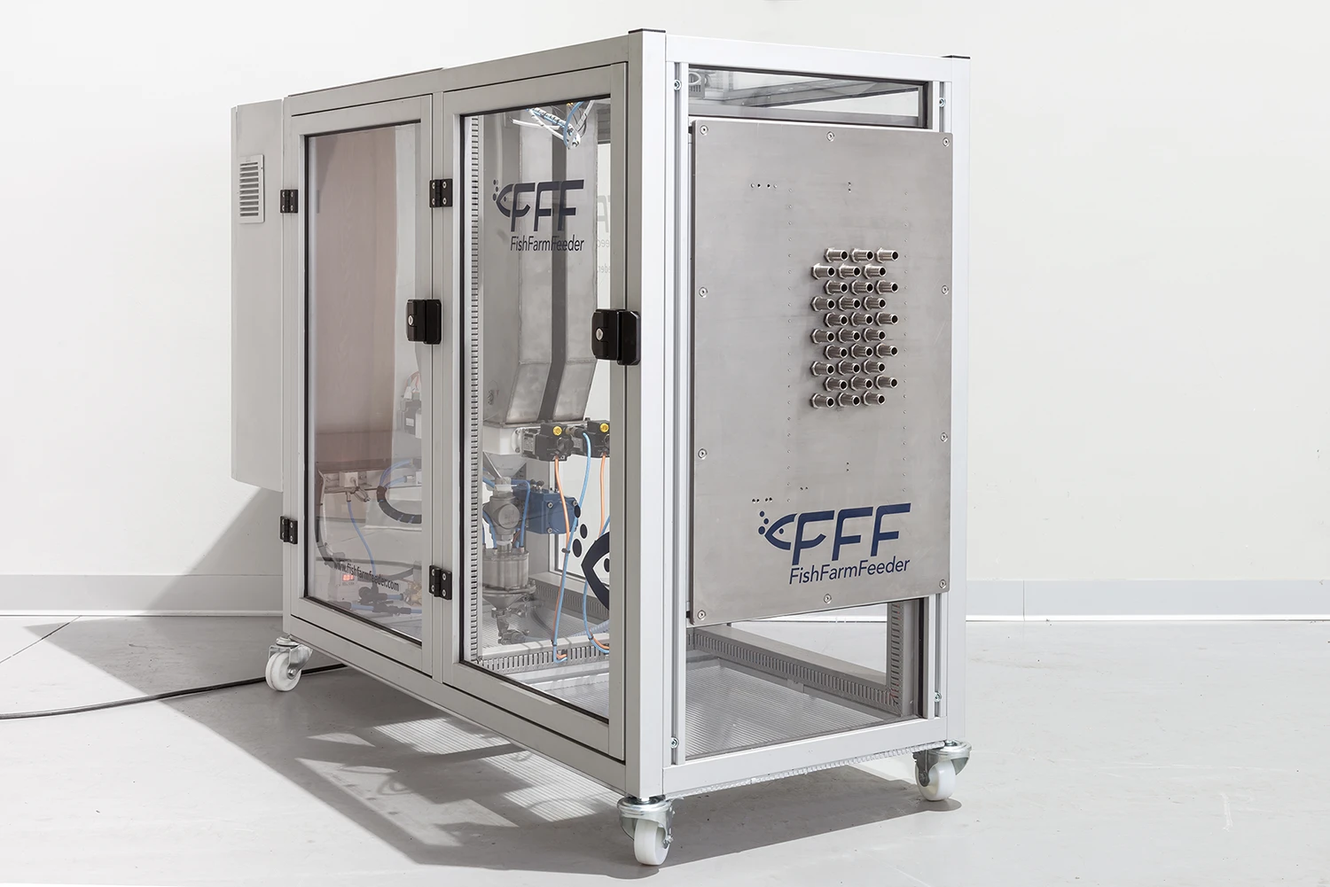 Alimentación con microdietas de pienso seco extrusionadas, peletizadas o esferizadas. Fabricación a medida en acero inoxidable y aluminio con 3 silos con capacidad para un total de 30Kg. Dosificación de alta precisión utilizando tornillo sinfín dimensionado acorde al tamaño de la dosificación. Alimentación en fase densa con dosis máximas individuales de 100 gramos utilizando compresor de aire. Software Aqua3F para una completa gestión de la dosificación, trazabilidad de la especie y el alimento e históricos de alimentación.