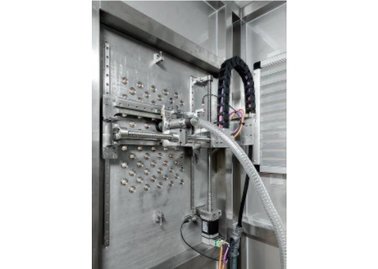 Nuestro selector en forma de matriz es mucho más rápido que los sistemas tradicionales en forma de revolver al permitir posicionar la salida con movimientos verticales, horizontales y en diagonal, además de poder llegar a fabricar selectores de hasta 200 salidas.